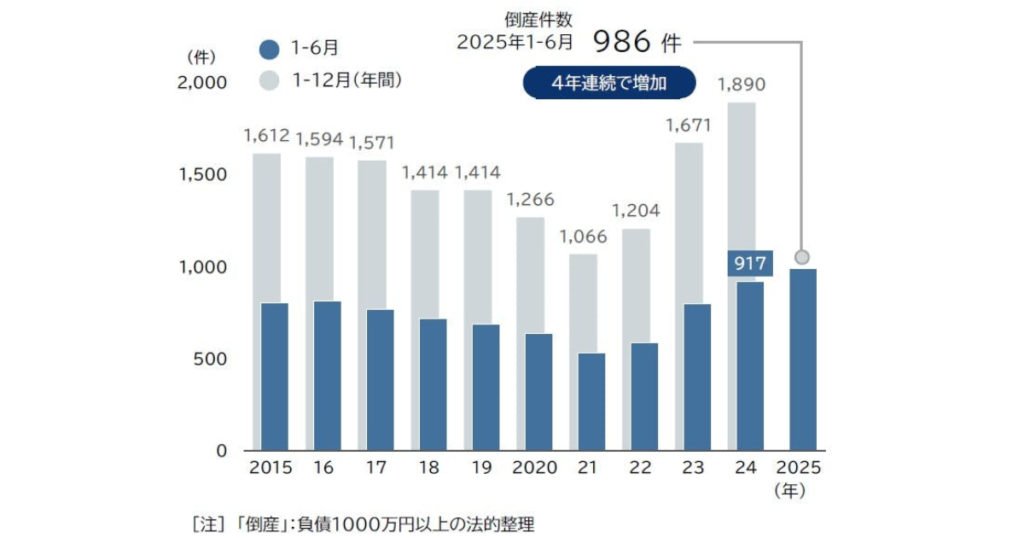 ※出典:「建設業」の倒産動向(2025年上半期)(帝国データバンク)