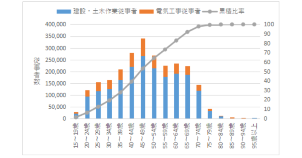 これは、業界の就業者構成が著しく高齢化しているためです。