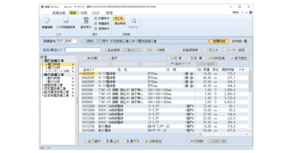 でんきやさんV5は、実務に即した材料マスタによって見積作成の時間を短縮します。
